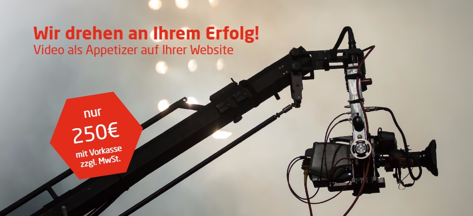 Präsentieren Sie Ihr Angebot oder stellen Sie Ihre Firma in einem etwa einminütigem Video vor. Durch außergewöhnliche Bilder und stimmige Musik wecken Sie schnell Interesse und begrüssen die Besucher Ihrer Website mit einem besonderen Hingucker. Der webpetizer der Firma jedernet zeichnet sich durch Kreativität, Ästhetik und Wirkung aus. Mit einem Webvideo steigern Sie die Sichtbarkeit Ihrer Website bei Google & Co. Und das schon für € 250,00!