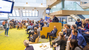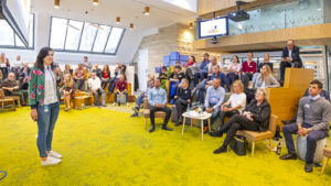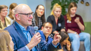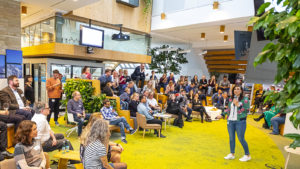 Johannes Woll, Initiator der Veranstaltung und Geschäftsführer Marketing & Kommunikation der Social Event begrüßte zusammen mit seinen Co-Hosts Nadine de Zoeten und Irène Kilubi die Teilnehmer, bevor Steffen Wist, verantwortlich für Kommunikation & PR bei LinkedIn Deutschland, über die Lokalisierungsbestrebungen von LinkedIn und das Diversity-Engagement des Netzwerkes sprach.