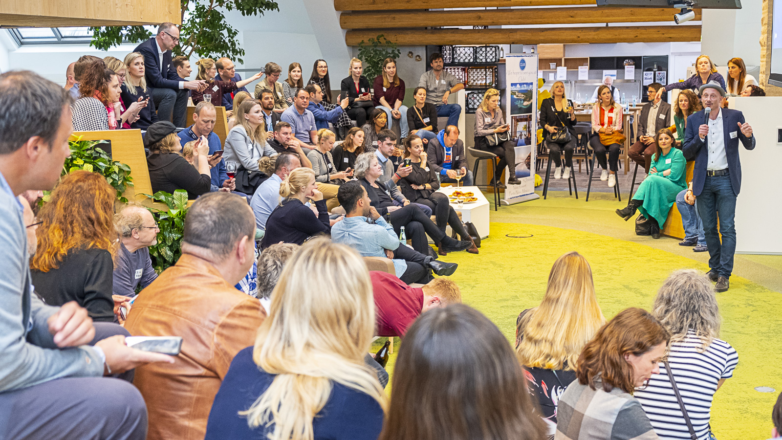 Johannes Woll, Initiator der Veranstaltung und Geschäftsführer Marketing & Kommunikation der Social Event begrüßte zusammen mit seinen Co-Hosts Nadine de Zoeten und Irène Kilubi die Teilnehmer, bevor Steffen Wist, verantwortlich für Kommunikation & PR bei LinkedIn Deutschland, über die Lokalisierungsbestrebungen von LinkedIn und das Diversity-Engagement des Netzwerkes sprach.