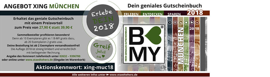 Mit der neuen Ausgabe entdeckst Du neue und altbekannte Teilnehmer, erlebst deren Leistung und sparst kräftig dabei. B-MY München ist kein gewöhnliches Gutscheinbuch – es ist Dein Begleiter zu den Top-Adressen aus Gastronomie, Freizeit, Wellness und Einkaufen!