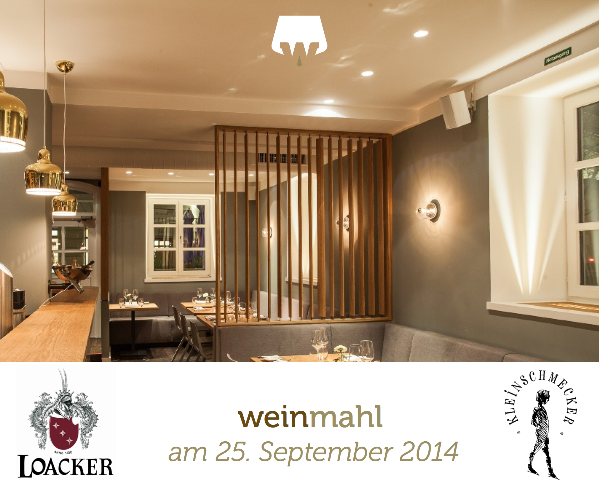 weinmahl Preis pro Person : Frühbucherpreis bis zum 14. September 2014: 130,00 € p.P. inkl. Wissensstationen mit Fingerfood, Spumante, 4-Gang Menü plus Käse inkl. Weinbegleitung, Brot, Wasser, Espresso, Moderation, Verkostungsunterlagen. Ab dem 15. September 2014 erhöht sich der Preis p.P. auf 140,00 €.